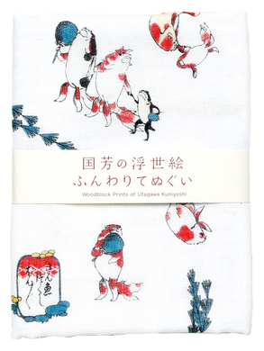 • 浮世絵 二重ガーゼ手拭い【流行猫の曲てまり】(山本仁商店)
